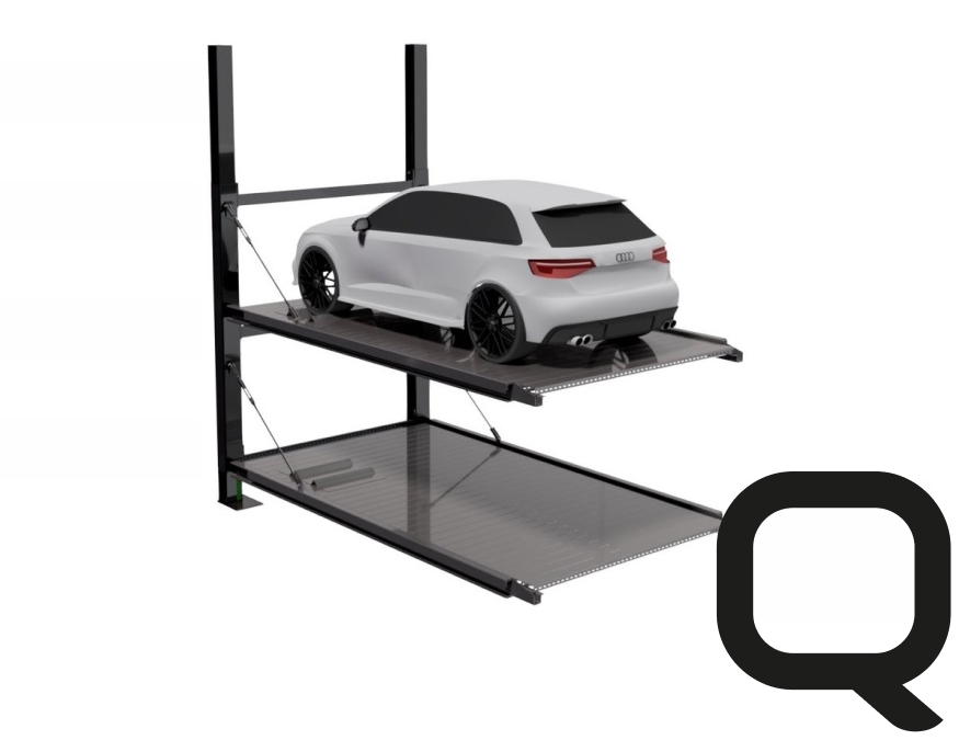 The cantilever is a type of doubler belonging to the category of independent parking, which means that it is not necessary to extract the car positioned under the lift to exit with the car, since the second platform allows the car to be parked hidden inside a specially created space. It consists of two columns fixed to the wall and a galvanized sheet metal platform that is raised in a cantilever manner. The platforms are lifted by two hydraulic cylinders, mechanically balanced by chains tied to the ends of the supporting shoulder. The structure is particularly convenient as it does not require side columns that create discomfort when entering and exiting the car.