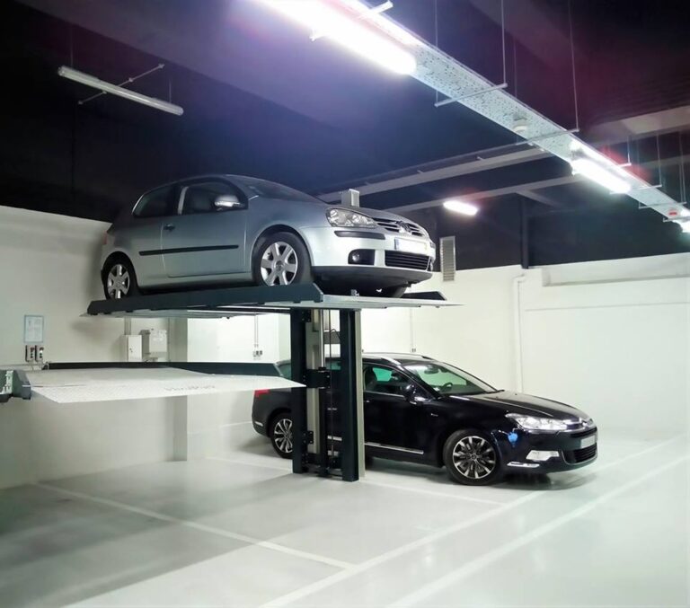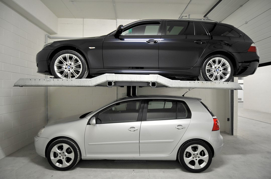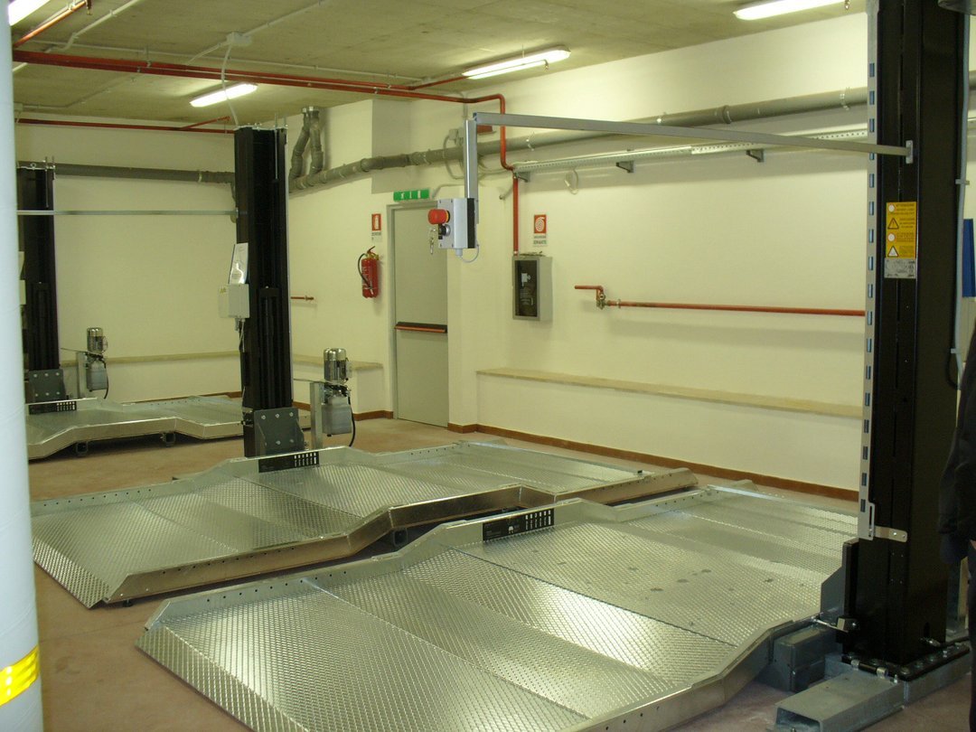 Simple and effective, the garage car doublers consist of two columns with a platform that allows you to lift a car and park the second one underneath. The lifting is guaranteed by two hydraulic cylinders, while two safety hooks ensure the platform is kept in position. The platform is moved using highly resistant runners, with self-supporting uprights firmly fixed to the floor to prevent overturning.