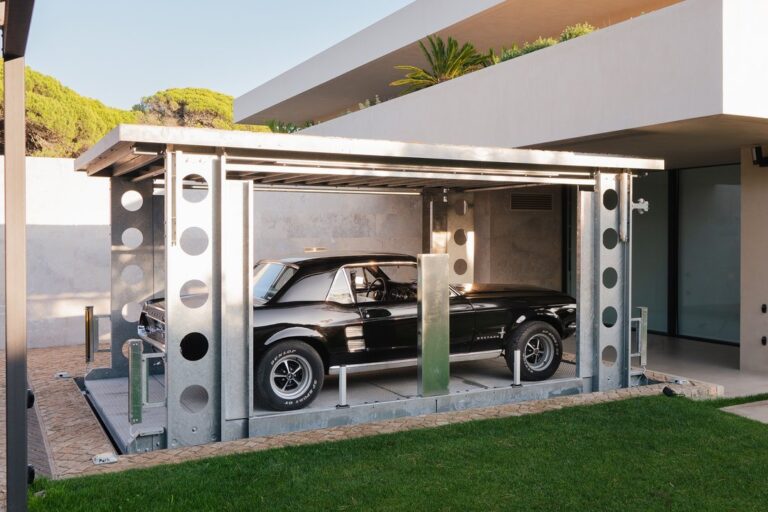 Svecom Parking Solutions offers a unique option for installing an immersive room in the PA4R1 four-column rooftop car elevator, transforming the car elevator into an extraordinary experience. Using a revolutionary 360-degree laser video projection system and a sophisticated sound system with Dolby Atmos technology, the environment is transformed into an unprecedented sensory journey.
