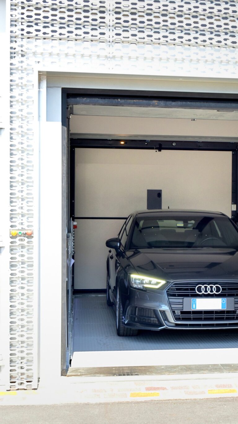 L’ascensore per auto a 2 colonne PM2L1 offre una soluzione innovativa e sicura per il parcheggio in garage.Grazie al sistema montauto con due colonne laterali creato da Svecom Parking Solutions, il conducente ha la comodità di restare all’interno della sua vettura mentre questa viene sollevata o abbassata. La sicurezza è garantita da una serie di dispositivi avanzati, tra cui una barriera di fotocellule per controllare l’esatta posizione della vettura sulla piattaforma e un sistema di controllo della tensione delle funi. Anche in mancanza di corrente elettrica, la discesa e l’apertura delle porte del montauto sono assicurate da un dispositivo UPS, assicurando una via di fuga in caso di emergenza. Il montauto a 2 colonne PM2L1 è dotato di un radiocomando a distanza che consente di chiamare la piattaforma vuota direttamente dalla vettura in strada. È anche possibile equipaggiare l’impianto con un combinatore telefonico, permettendo di contattare la centrale di soccorso in caso di emergenza.