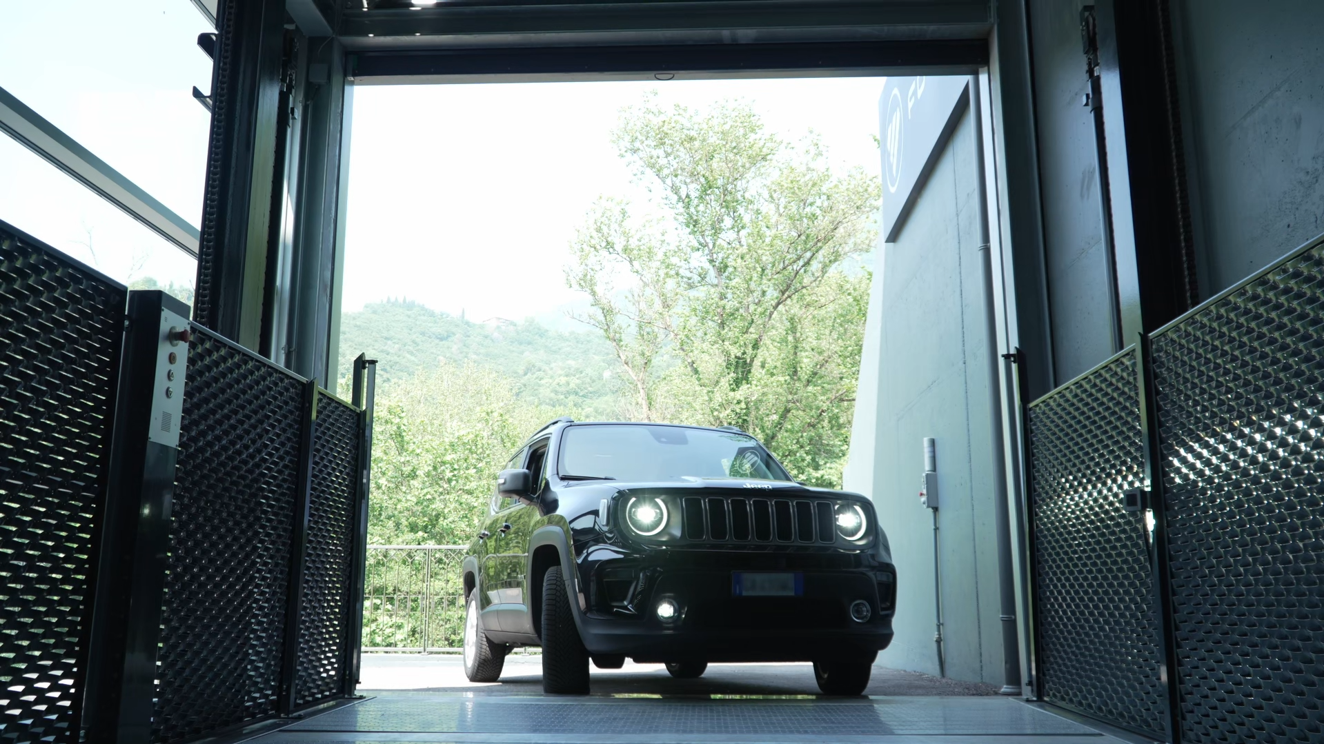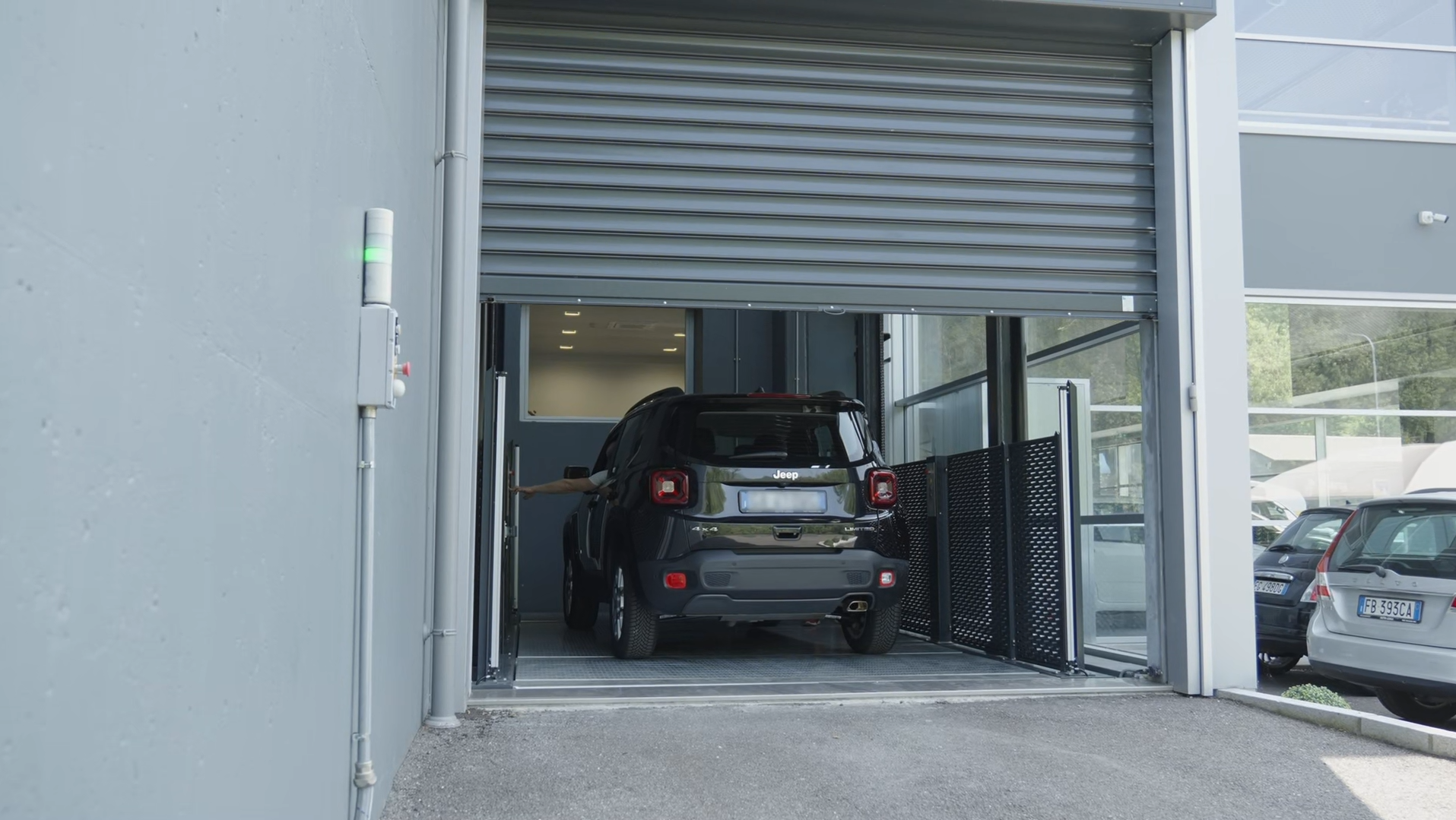 Con una corsa di 5,15 metri e un pianale di 3000 x 5200 mm, l’impianto garantisce affidabilità e facilità di accesso. La piattaforma, perfettamente integrata nella struttura esistente, offre un parcheggio comodo e sicuro, senza rinunciare all’estetica e alla qualità costruttiva.